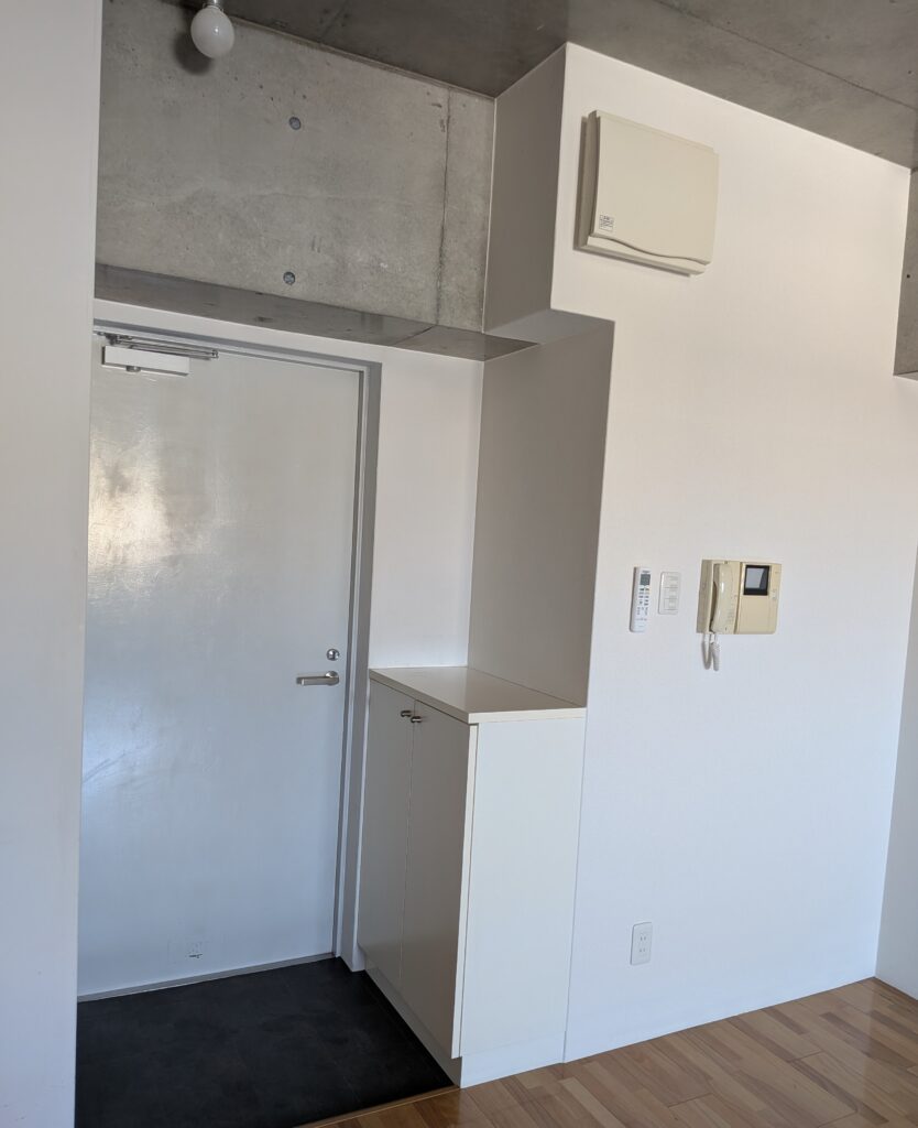 備え付けのシューズボックスがあるだけのすっきり玄関を入ると、